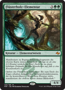 | Rules | At the beginning of your end step, manifest the top card of your library. (Put it onto the battlefield face down as a 2/2 creature. Turn it face up any time for its mana cost if it's a creature card.) Sacrifice Whisperwood Elemental: Until end of turn, face-up nontoken creatures you control gain "When this creature dies, manifest the top card of your library." |