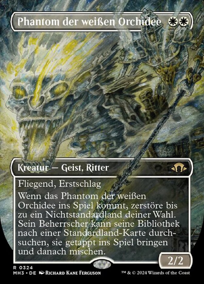 | Rules | Flying, first strike When White Orchid Phantom enters the battlefield, destroy up to one target nonbasic land. Its controller may search their library for a basic land card, put it onto the battlefield tapped, then shuffle. |