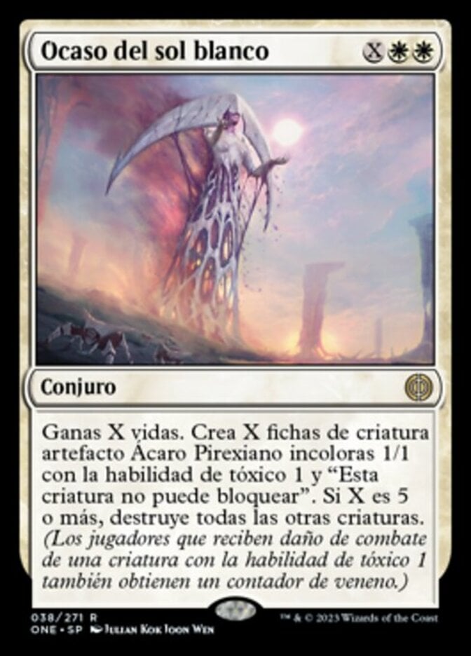 | Rules | You gain X life. Create X 1/1 colorless Phyrexian Mite artifact creature tokens with toxic 1 and "This creature can't block." If X is 5 or more, destroy all other creatures. (Players dealt combat damage by a creature with toxic 1 also get a poison counter.) |