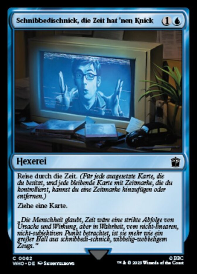 | Rules | Time travel. (For each suspended card you own and each permanent you control with a time counter on it, you may add or remove a time counter.) Draw a card. |