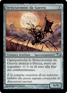 | Rules | Whenever Wicker Warcrawler attacks or blocks, put a -1/-1 counter on it at end of combat. |