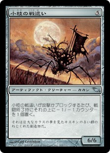 | Rules | Whenever Wicker Warcrawler attacks or blocks, put a -1/-1 counter on it at end of combat. |