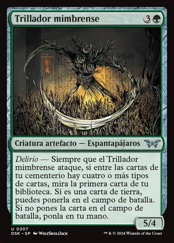 | Rules | Delirium — Whenever Wickerfolk Thresher attacks, if there are four or more card types among cards in your graveyard, look at the top card of your library. If it's a land card, you may put it onto the battlefield. If you don't put the card onto the battlefield, put it into your hand. |