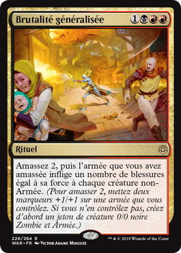 | Rules | Amass 2, then the Army you amassed deals damage equal to its power to each non-Army creature. (To amass 2, put two +1/+1 counters on an Army you control. If you don't control one, create a 0/0 black Zombie Army creature token first.) |