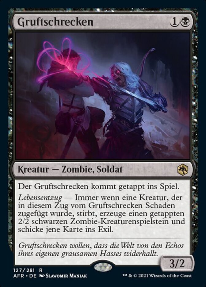 | Rules | Wight enters the battlefield tapped. Life Drain — Whenever a creature dealt damage by Wight this turn dies, create a tapped 2/2 black Zombie creature token and exile that card. |