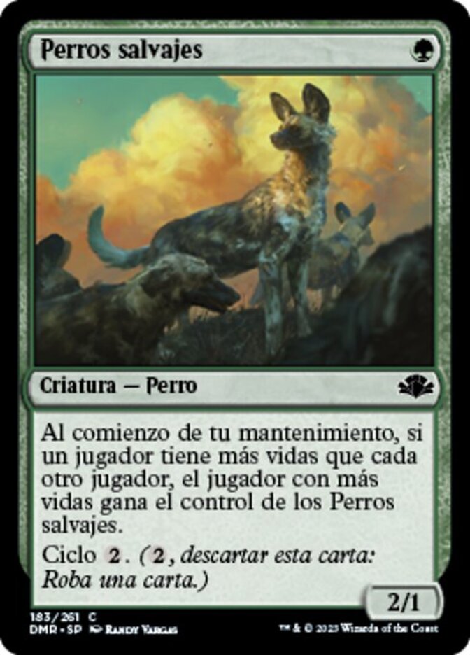 | Rules | At the beginning of your upkeep, if a player has more life than each other player, the player with the most life gains control of Wild Dogs. Cycling (, Discard this card: Draw a card.) |