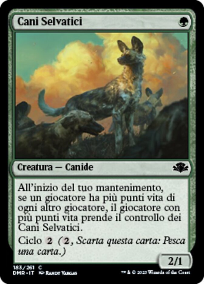 | Rules | At the beginning of your upkeep, if a player has more life than each other player, the player with the most life gains control of Wild Dogs. Cycling (, Discard this card: Draw a card.) |