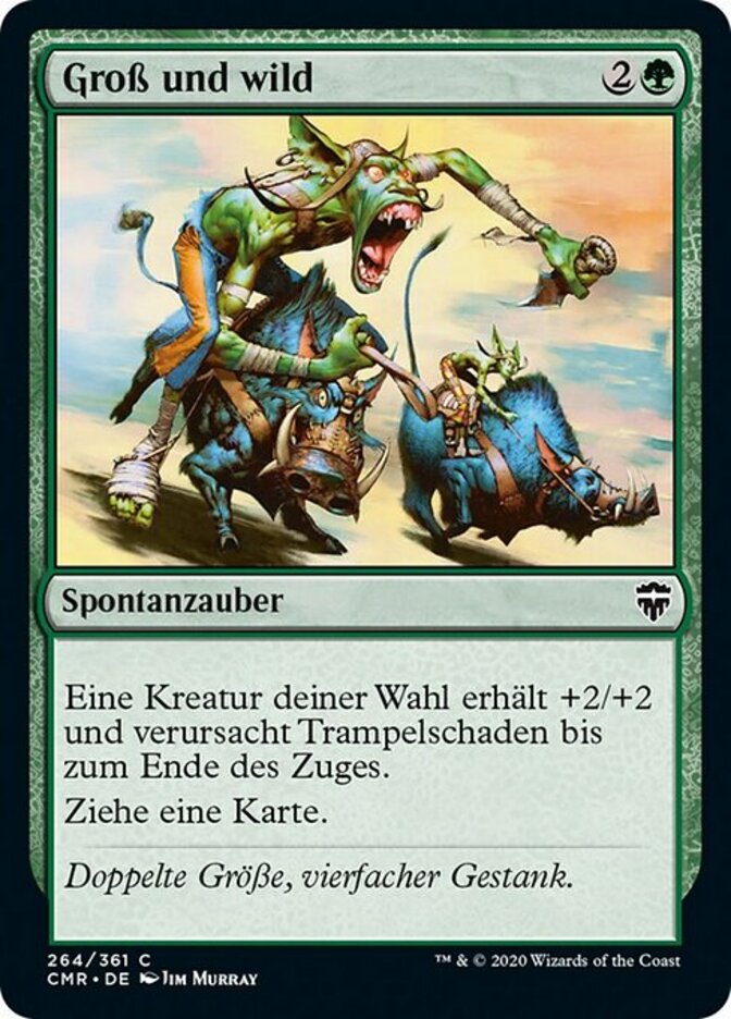 | Rules | Target creature gets +2/+2 and gains trample until end of turn. Draw a card. |