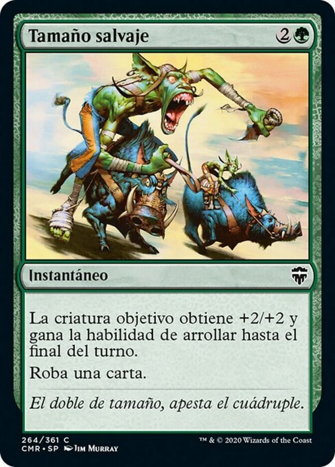 | Rules | Target creature gets +2/+2 and gains trample until end of turn. Draw a card. |