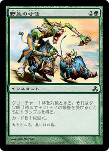 | Rules | Target creature gets +2/+2 and gains trample until end of turn. Draw a card. |
