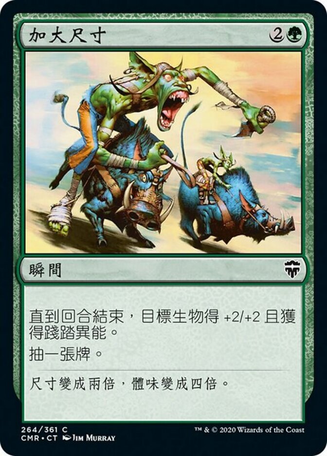 | Rules | Target creature gets +2/+2 and gains trample until end of turn. Draw a card. |