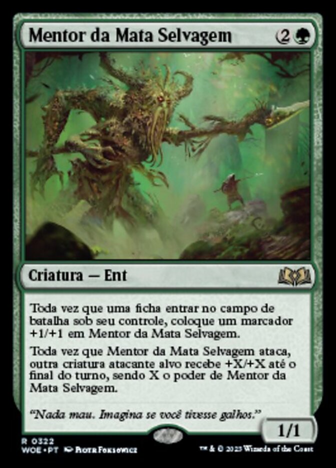 | Rules | Whenever a token enters the battlefield under your control, put a +1/+1 counter on Wildwood Mentor. Whenever Wildwood Mentor attacks, another target attacking creature gets +X/+X until end of turn, where X is Wildwood Mentor's power. |