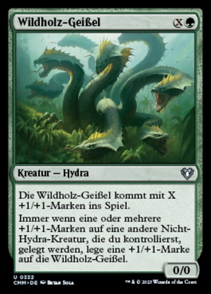 | Rules | Wildwood Scourge enters the battlefield with X +1/+1 counters on it. Whenever one or more +1/+1 counters are put on another non-Hydra creature you control, put a +1/+1 counter on Wildwood Scourge. |