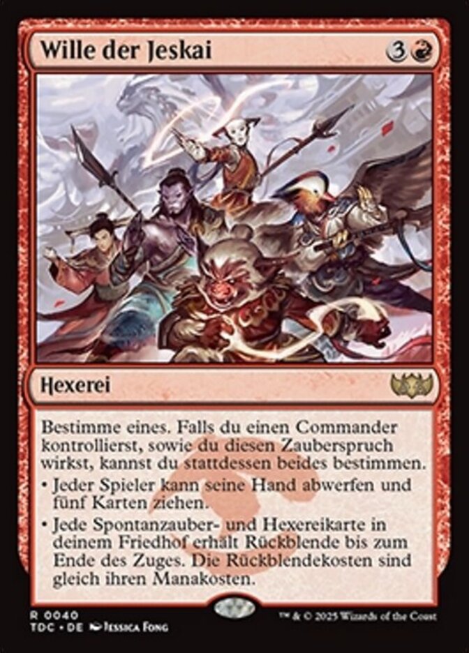 | Rules | Choose one. If you control a commander as you cast this spell, you may choose both instead. • Each player may discard their hand and draw five cards. • Each instant and sorcery card in your graveyard gains flashback until end of turn. The flashback cost is equal to its mana cost. |