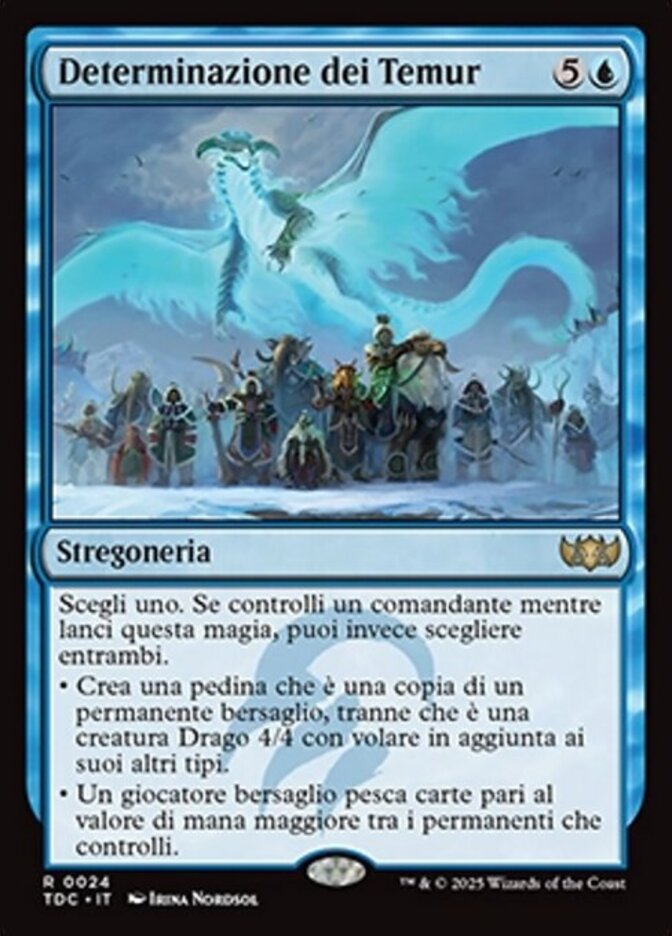 | Rules | Choose one. If you control a commander as you cast this spell, you may choose both instead. • Create a token that's a copy of target permanent, except it's a 4/4 Dragon creature with flying in addition to its other types. • Target player draws cards equal to the greatest mana value among permanents you control. |