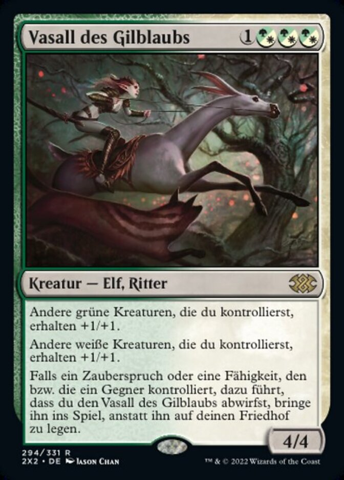 | Rules | Other green creatures you control get +1/+1. Other white creatures you control get +1/+1. If a spell or ability an opponent controls causes you to discard Wilt-Leaf Liege, put it onto the battlefield instead of putting it into your graveyard. |