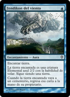 | Rules | Enchant land Enchanted land is a 2/2 blue Elemental creature with flying. It's still a land. When enchanted land dies, return that card to its owner's hand. |