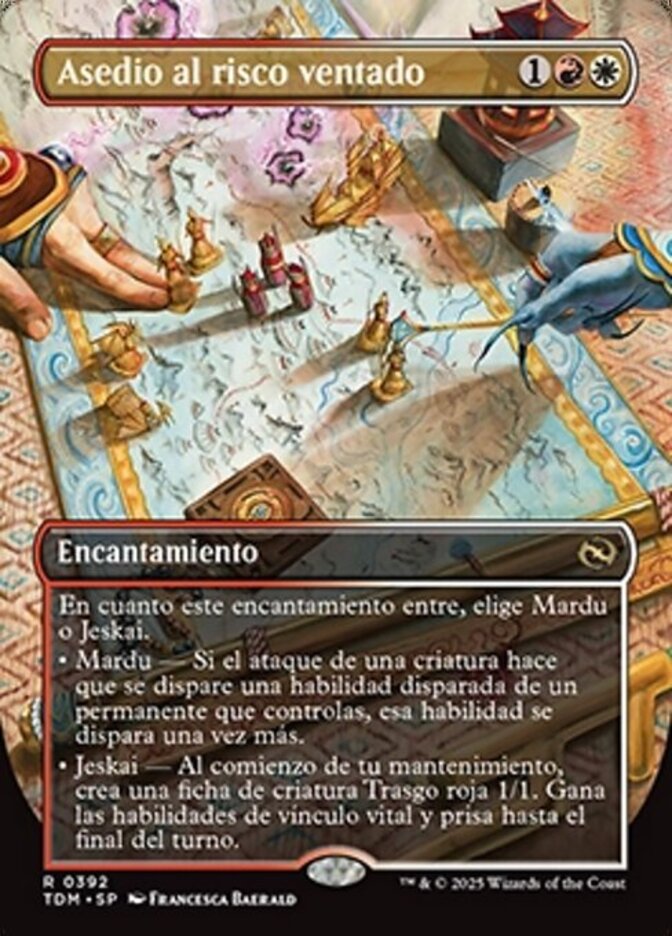 | Rules | As this enchantment enters, choose Mardu or Jeskai. • Mardu — If a creature attacking causes a triggered ability of a permanent you control to trigger, that ability triggers an additional time. • Jeskai — At the beginning of your upkeep, create a 1/1 red Goblin creature token. It gains lifelink and haste until end of turn. |