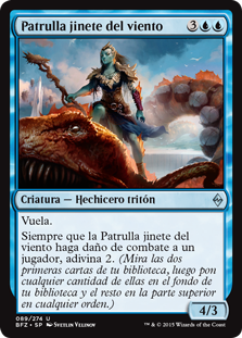 | Rules | Flying Whenever Windrider Patrol deals combat damage to a player, scry 2. (Look at the top two cards of your library, then put any number of them on the bottom of your library and the rest on top in any order.) |