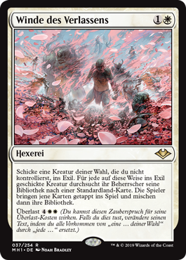 | Rules | Exile target creature you don't control. For each creature exiled this way, its controller searches their library for a basic land card. Those players put those cards onto the battlefield tapped, then shuffle. Overload (You may cast this spell for its overload cost. If you do, change its text by replacing all instances of "target" with "each.") |