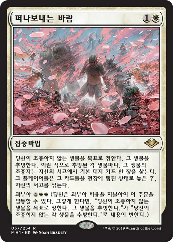 | Rules | Exile target creature you don't control. For each creature exiled this way, its controller searches their library for a basic land card. Those players put those cards onto the battlefield tapped, then shuffle. Overload (You may cast this spell for its overload cost. If you do, change its text by replacing all instances of "target" with "each.") |