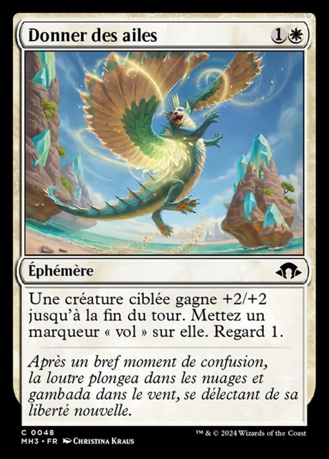 | Rules | Target creature gets +2/+2 until end of turn. Put a flying counter on it. Scry 1. |