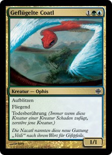 | Rules | Flash (You may cast this spell any time you could cast an instant.) Flying Deathtouch (Any amount of damage this deals to a creature is enough to destroy it.) |
