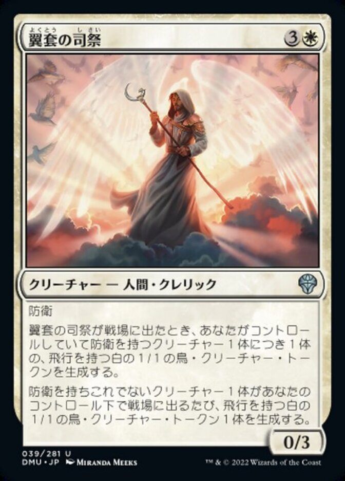| Rules | Defender When Wingmantle Chaplain enters the battlefield, create a 1/1 white Bird creature token with flying for each creature with defender you control. Whenever another creature with defender enters the battlefield under your control, create a 1/1 white Bird creature token with flying. |