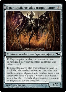| Rules | Wingrattle Scarecrow has flying as long as you control a blue creature. Wingrattle Scarecrow has persist as long as you control a black creature. (When this creature dies, if it had no -1/-1 counters on it, return it to the battlefield under its owner's control with a -1/-1 counter on it.) |