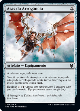 | Rules | Equipped creature has flying. Sacrifice Wings of Hubris: Equipped creature can't be blocked this turn. Sacrifice it at the beginning of the next end step. Equip (: Attach to target creature you control. Equip only as a sorcery.) |