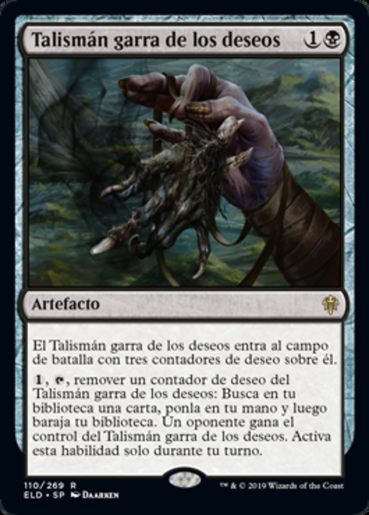 | Rules | Wishclaw Talisman enters the battlefield with three wish counters on it. , , Remove a wish counter from Wishclaw Talisman: Search your library for a card, put it into your hand, then shuffle. An opponent gains control of Wishclaw Talisman. Activate only during your turn. |