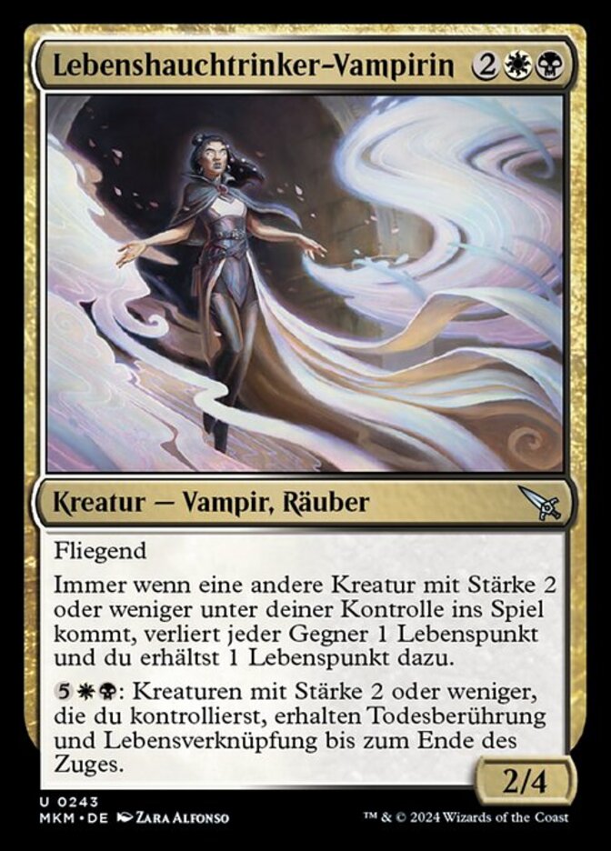 | Rules | Flying Whenever another creature with power 2 or less enters the battlefield under your control, each opponent loses 1 life and you gain 1 life. : Creatures you control with power 2 or less gain deathtouch and lifelink until end of turn. |