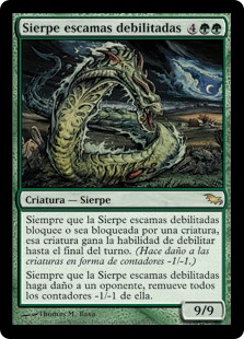 | Rules | Whenever Witherscale Wurm blocks or becomes blocked by a creature, that creature gains wither until end of turn. (It deals damage to creatures in the form of -1/-1 counters.) Whenever Witherscale Wurm deals damage to an opponent, remove all -1/-1 counters from it. |