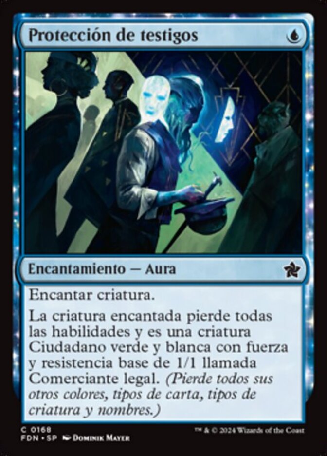 | Rules | Enchant creature Enchanted creature loses all abilities and is a green and white Citizen creature with base power and toughness 1/1 named Legitimate Businessperson. (It loses all other colors, card types, creature types, and names.) |