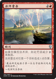 | Rules | This spell costs less to cast if you control a Wizard. Wizard's Lightning deals 3 damage to any target. |