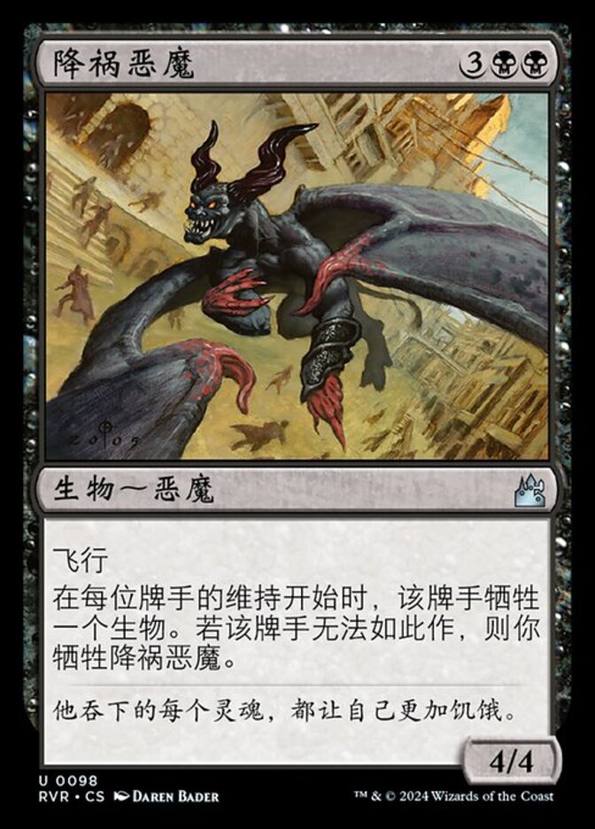 | Rules | Flying At the beginning of each player's upkeep, that player sacrifices a creature. If the player can't, sacrifice Woebringer Demon. |