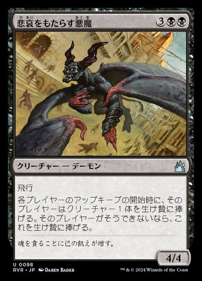 | Rules | Flying At the beginning of each player's upkeep, that player sacrifices a creature. If the player can't, sacrifice Woebringer Demon. |
