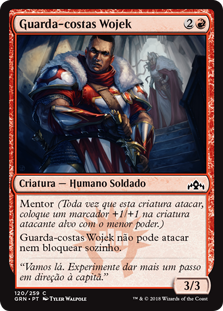 | Rules | Mentor (Whenever this creature attacks, put a +1/+1 counter on target attacking creature with lesser power.) Wojek Bodyguard can't attack or block alone. |
