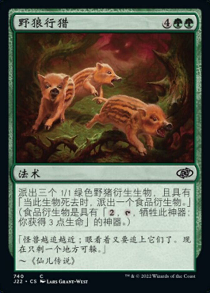 | Rules | Create three 1/1 green Boar creature tokens with "When this creature dies, create a Food token." (A Food token is an artifact with ", , Sacrifice this artifact: You gain 3 life.") |