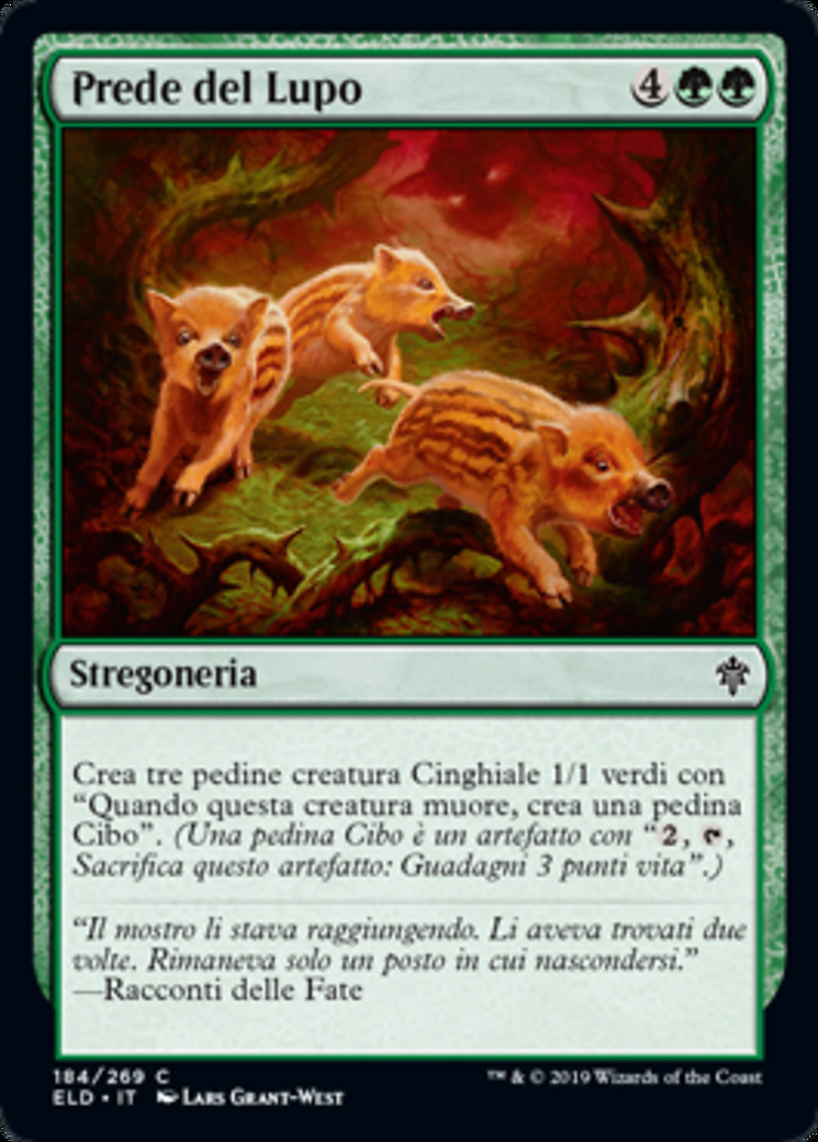 | Rules | Create three 1/1 green Boar creature tokens with "When this creature dies, create a Food token." (A Food token is an artifact with ", , Sacrifice this artifact: You gain 3 life.") |
