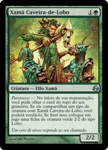| Rules | Kinship — At the beginning of your upkeep, you may look at the top card of your library. If it shares a creature type with Wolf-Skull Shaman, you may reveal it. If you do, create a 2/2 green Wolf creature token. |