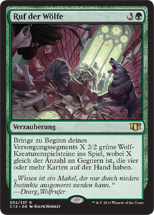 | Rules | At the beginning of your upkeep, create X 2/2 green Wolf creature tokens, where X is the number of your opponents with four or more cards in hand. |