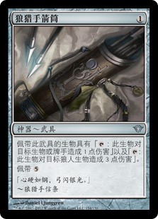 | Rules | Equipped creature has ": This creature deals 1 damage to any target" and ": This creature deals 3 damage to target Werewolf creature." Equip |