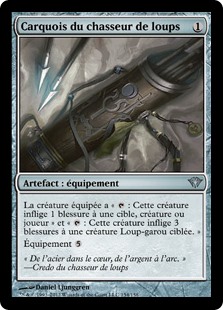 | Rules | Equipped creature has ": This creature deals 1 damage to any target" and ": This creature deals 3 damage to target Werewolf creature." Equip |