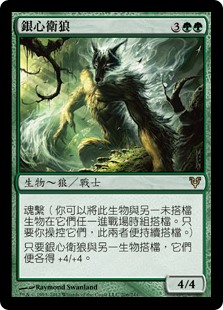 | Rules | Soulbond (You may pair this creature with another unpaired creature when either enters the battlefield. They remain paired for as long as you control both of them.) As long as Wolfir Silverheart is paired with another creature, each of those creatures gets +4/+4. |