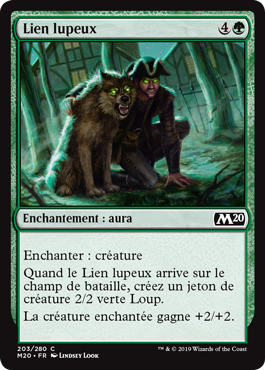 | Rules | Enchant creature When Wolfkin Bond enters the battlefield, create a 2/2 green Wolf creature token. Enchanted creature gets +2/+2. |