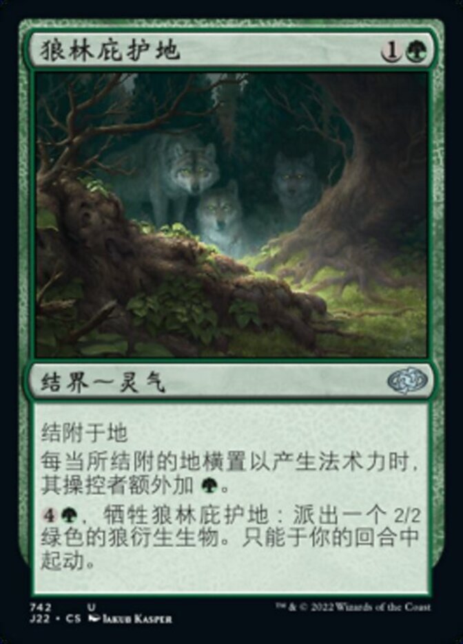 , Sacrifice Wolfwillow Haven: Create a 2/2 green Wolf creature token. Activate only during your turn.