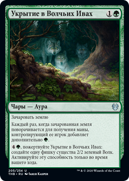 | Rules | Enchant land Whenever enchanted land is tapped for mana, its controller adds an additional . , Sacrifice Wolfwillow Haven: Create a 2/2 green Wolf creature token. Activate only during your turn. |