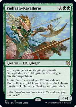 | Rules | At the beginning of each upkeep, create a 1/1 green Elf Warrior creature token. Whenever another Elf enters the battlefield under your control, you gain life equal to its toughness. |