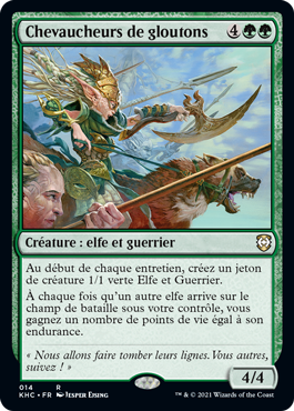 | Rules | At the beginning of each upkeep, create a 1/1 green Elf Warrior creature token. Whenever another Elf enters the battlefield under your control, you gain life equal to its toughness. |